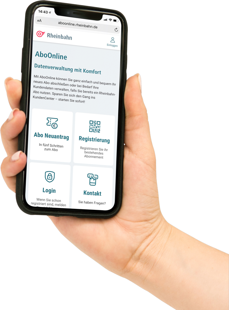 Bitte registrieren Sie sich über den Button „Registrierung“, wenn Sie Mein Rheinbahn Abo zum ersten Mal nutzen möchten. Bei weiteren Besuchen können Sie sich dann ganz einfach über den Button „Anmelden“